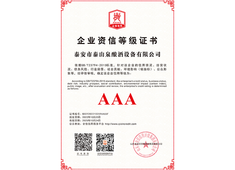 泰安市泰山泉釀酒設(shè)備有限公司,是一家專業(yè)從事釀酒設(shè)備機械化研發(fā)并集技術(shù)咨詢,工程設(shè)計,制造安裝,人員培訓(xùn)及售后服務(wù)為一體的綜合性企業(yè),本公司主要產(chǎn)品為:大曲清香、小曲清香、大曲醬香、大曲濃香等香型白酒機械化設(shè)備。 本公司與中國科學(xué)院自動化研究所簽訂技術(shù)服務(wù)合同,引進(jìn)先進(jìn)技術(shù),研究生產(chǎn)全自動化機械釀酒設(shè)備,由中國科學(xué)自動化研究所的技術(shù)支持,打造最先進(jìn)的生產(chǎn)釀酒設(shè)備,公司有信心打造全國最先進(jìn)白酒...